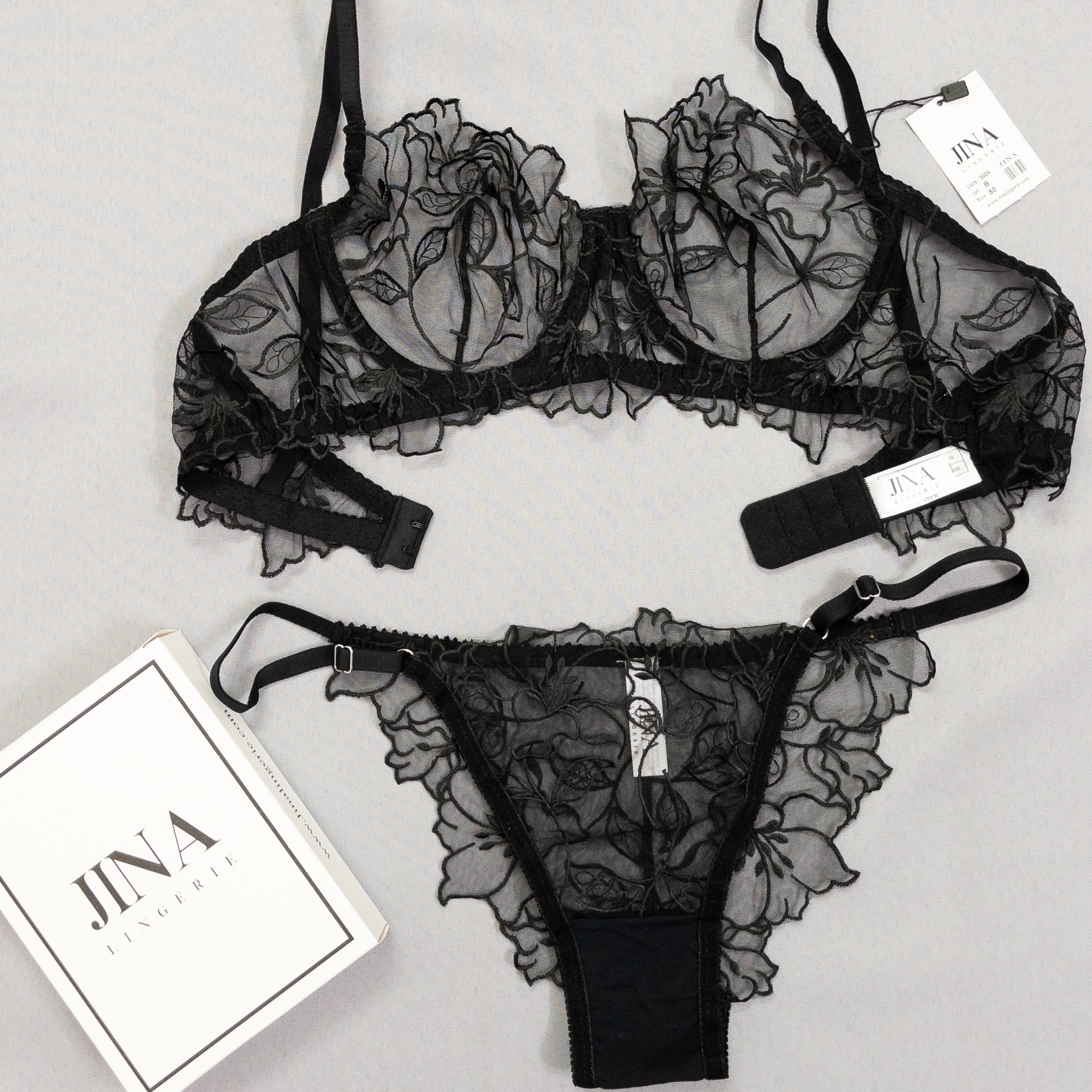 ست سوتین شورت ژانت مشکی از برند انوشه