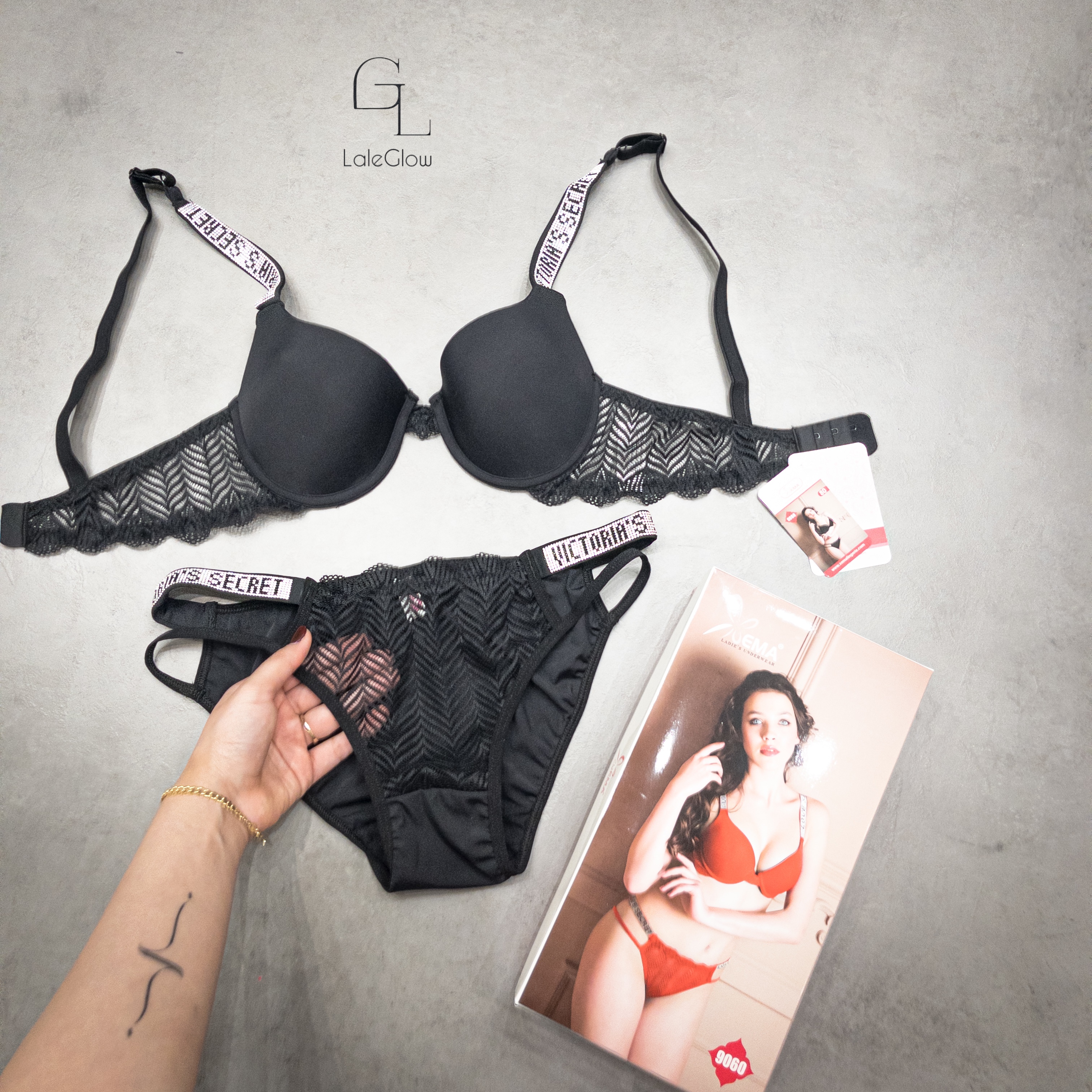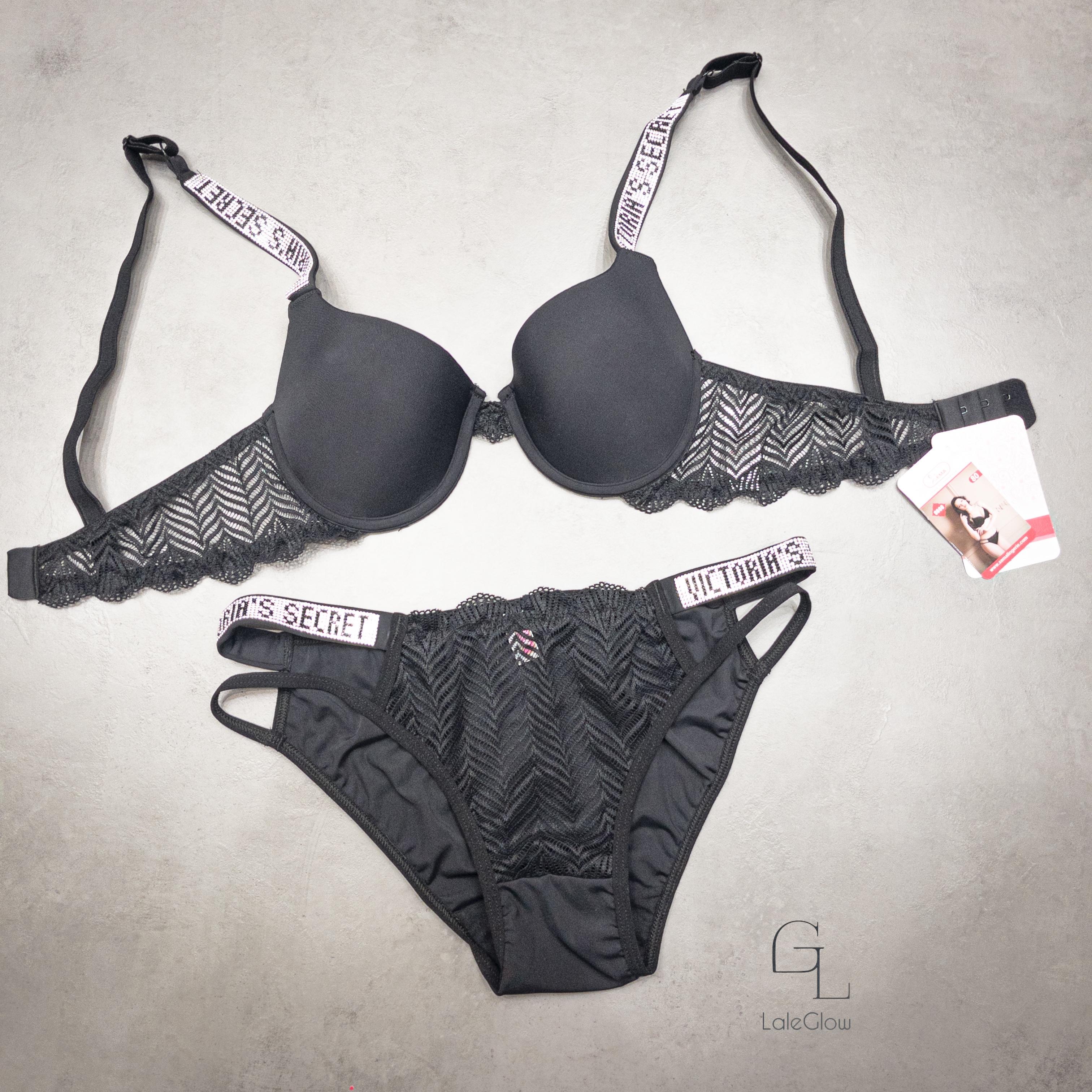ست سوتین شورت اسفنجی ویکتوریا سکرت از برند اما کاپ C, دارای پوش آپ لیفت کننده،فنر دار شورت مدل اسلیپ دارای سایزبندی ۷۵تا۹۰ موجود در رنگ مشکی